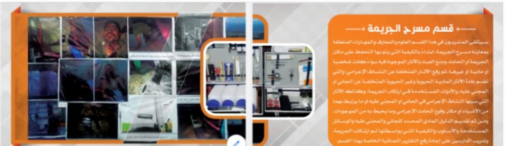 يتلقى المتدربون بهذا القسم العلوم والمعارف والمهارات المتعلقة بمعاينة مسرح الجريمة ابتداء بالكيفية التي يتم التحفظ بها على مسرح الجريمة أو الحادث , ومنع العبث بالآثار الموجودة فيه سواء كانت شخصية او مادية أو غيرها ثم رفع الآثار المتخلفة عن النشاط الإجرامي وتضم عادة الآثار المادية الحيوية وغير الحيوية المتخلفة عن الجاني أو المجني عليه أو مايرتبط بهما من الآشياء أو مكان وقوع الحادث الاجرامي ومايحيط به من الموجودات