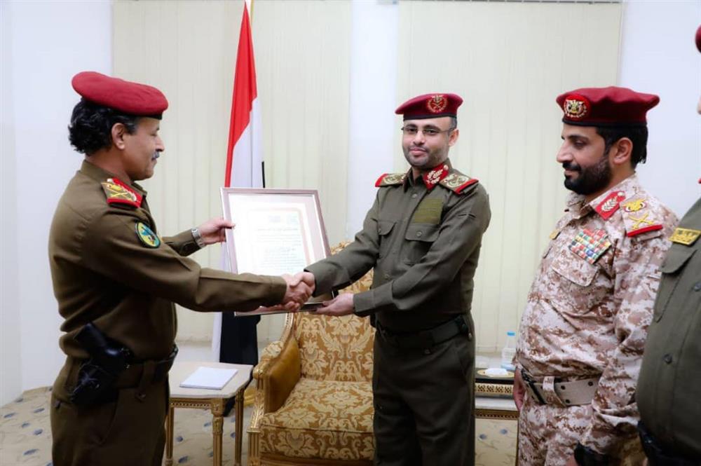 قام بتسليم الرئيس المشاط شهادة الماجستير الفخرية، وزير الدفاع اللواء الركن محمد ناصر العاطفي ورئيس هيئة الأركان العامة اللواء الركن محمد عبدالكريم الغماري وتقليده رتبة المشير الركن.